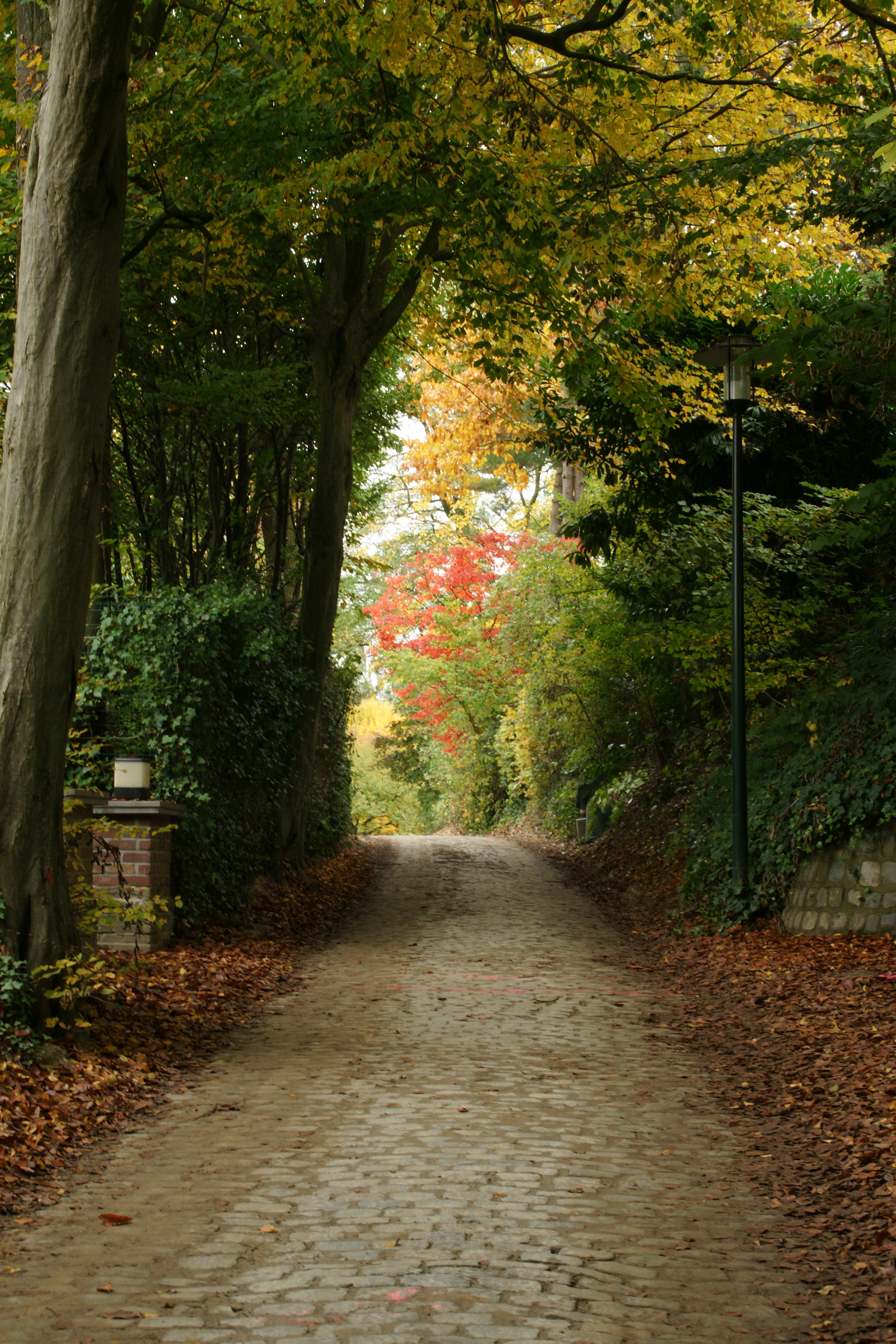 On our way back towards home, we chose to continue our journey on the back roads. It’s amazing how much you can feel like you are miles from everything just a few streets in from the main thoroughfares here. We passed yet another chateau-turned-club before finding ourselves at the official entrance to the Val Duchess. I haven’t figured this place out yet, but you can see some amazing houses and buildings from the Boulevard de Souverain and I have been dying to get inside this fenced property and explore. That still hasn’t happened. Instead we continued on until we found a street that we were relatively sure took us in the direction of Elizabeth’s house. The road was a narrow alley (but car sized this time) and at the end I realized where we were and just how close to home we were.